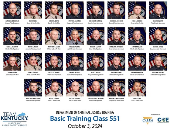RICHMOND, Ky. (Oct. 3, 2024) – Today, Gov. Andy Beshear announced that 30 law enforcement officers from agencies across the state have graduated from the Kentucky Department of Criminal Justice Training’s (DOCJT) basic training academy. These law enforcement officers now will return home to serve and protect the commonwealth and create safer communities.