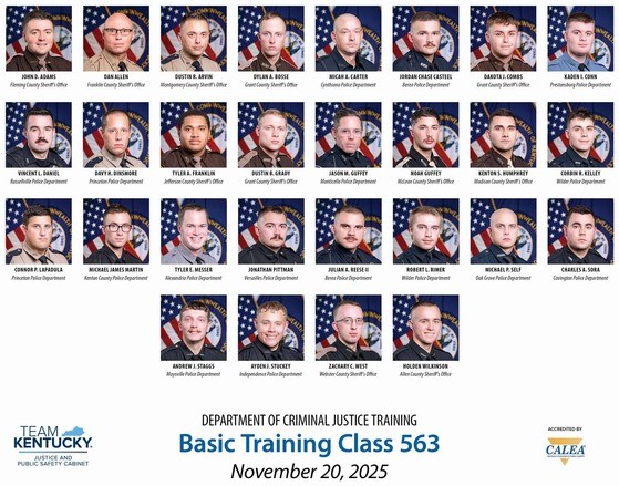 RICHMOND, Ky. (Nov. 20, 2025) – Today, Gov. Andy Beshear announced that 28 law enforcement officers from agencies across the commonwealth have graduated from the Kentucky Department of Criminal Justice Training’s (DOCJT) basic training academy in Richmond. These law enforcement officers now return home to serve, protect and create a safer New Kentucky Home.