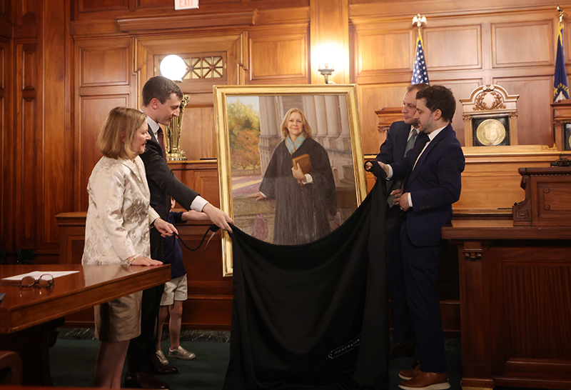 FRANKFORT, Ky. June 24, 2025 – The Supreme Court of Kentucky held a portrait dedication Friday for retired Deputy Chief Justice Lisabeth T. Hughes, marking the court’s final public event in the Capitol before moving to a temporary location during renovations.