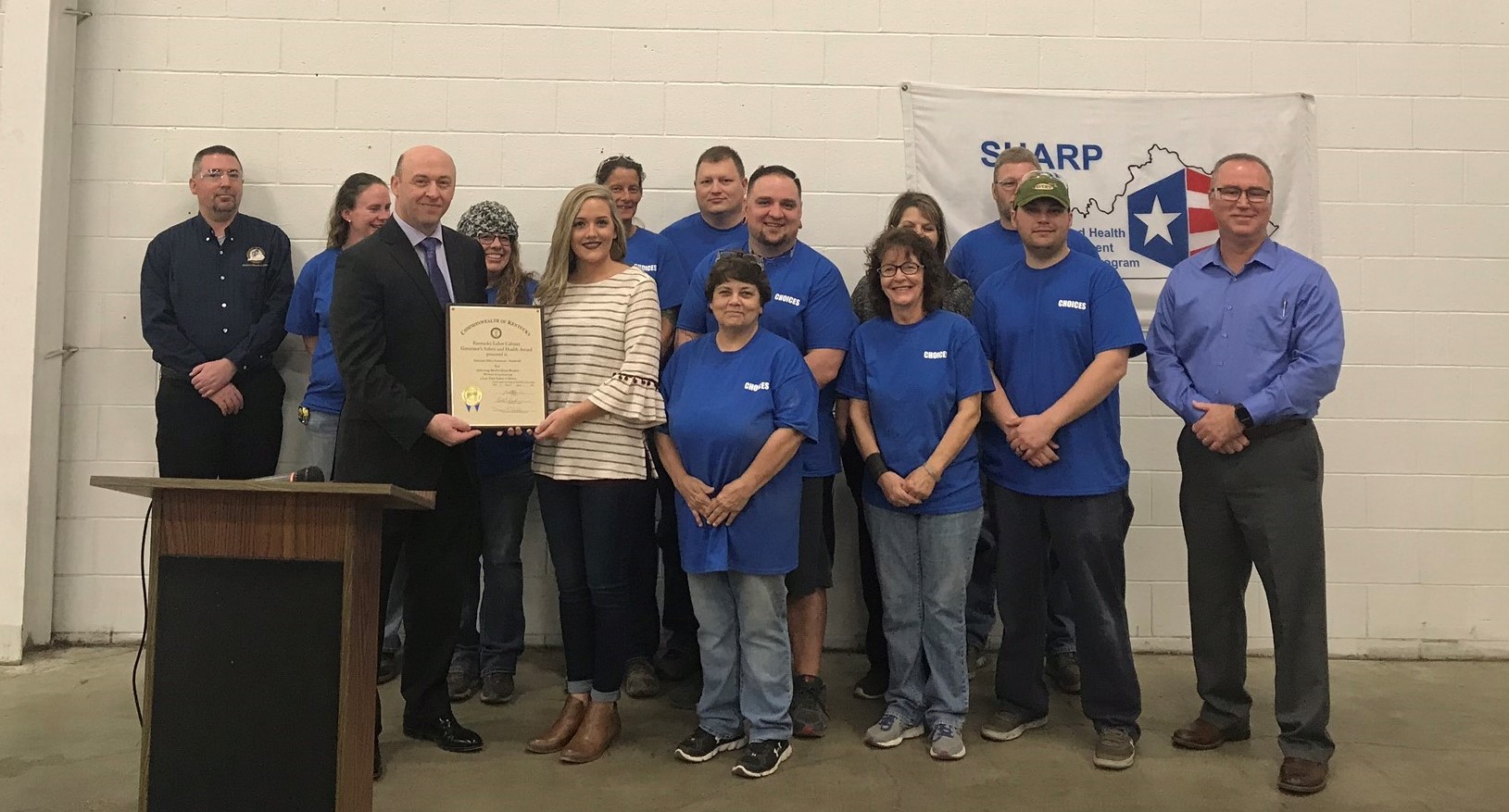 FRANKFORT, Ky. (March 7, 2019) – Representatives from the Kentucky Labor Cabinet visited National Office Furniture’s Fordsville, Kentucky, facility today to present a Governor’s Safety and Health Award in recognition of the 504,474 production hours worked by the employees at the plant without a lost-time incident. This award is presented to businesses and their employees with outstanding safety and health records across the Commonwealth.